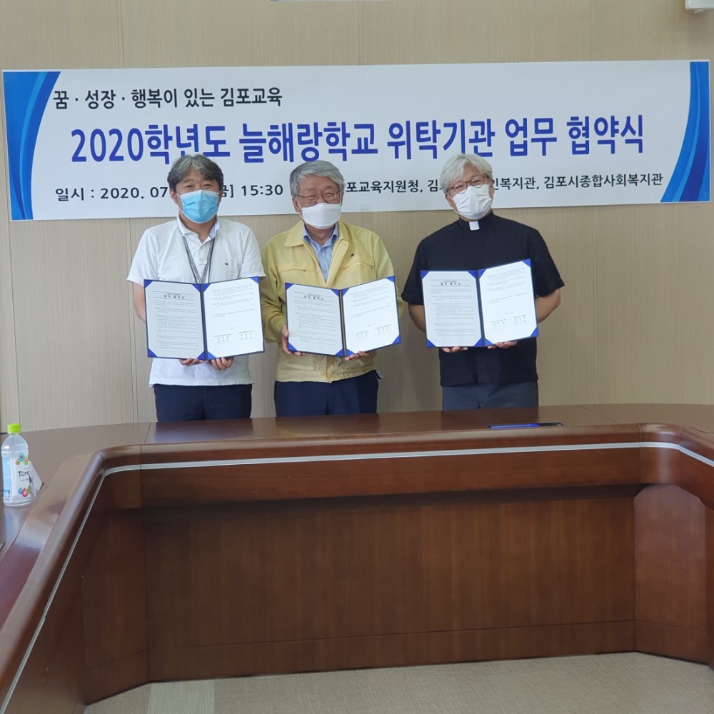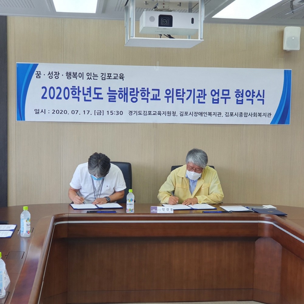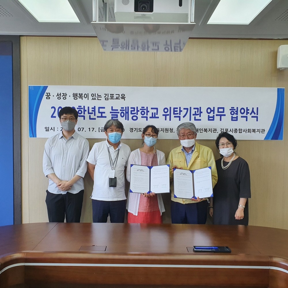 김포시종합사회복지관(관장 손용민)에서는 2020학년도 늘해랑학교 운영을 위해 경기도김포교육지청청(교육장 정경동)과 업무협약을 진행하였습니다.