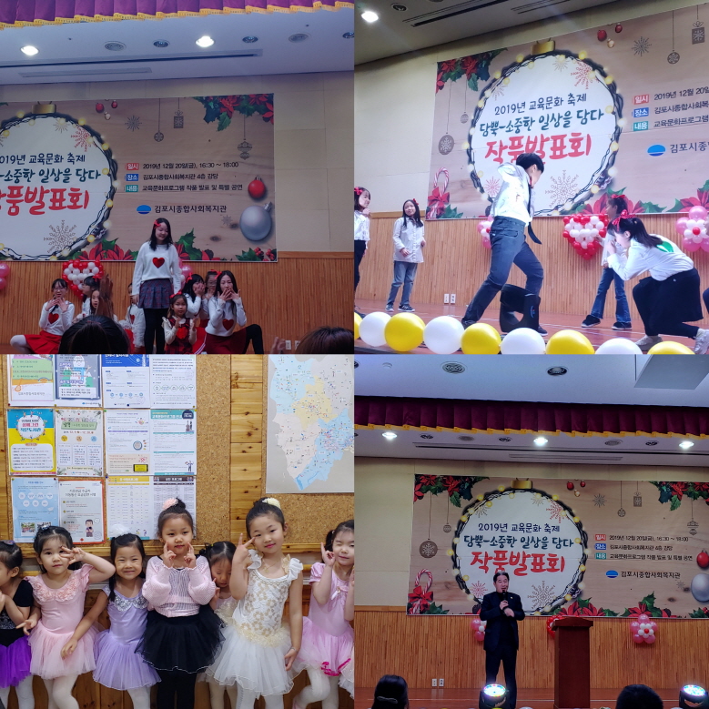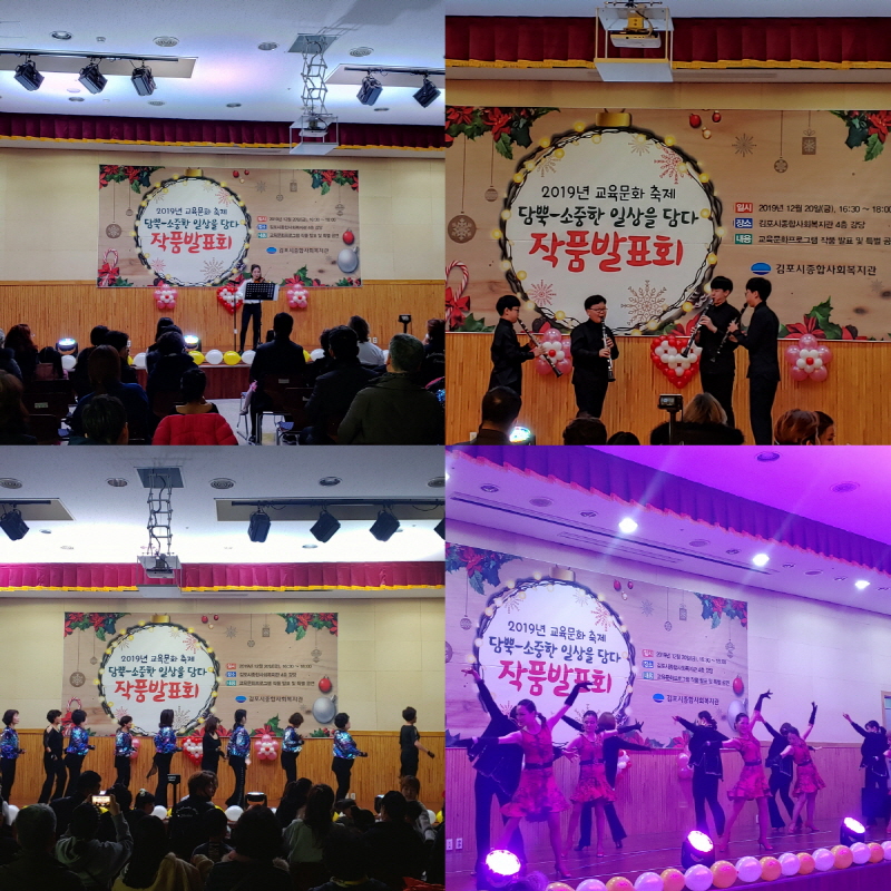 김포시종합사회복지관(관장 손용민)에서는 12월 9일(월)~27일(금) 2019년 교육문화 축제 \'담뿍 ; 소중한 일상을 담다\'와 12월 이용자의 날을 진행하였습니다.