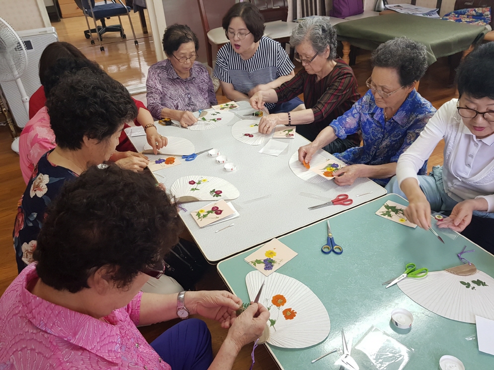 - 내 용 : 시원한 바람으로 무더위를 날려주고~! 꽃 향기가 날 것 같은~! \"압화 부채만들기\"활동을 진행하였습니다.