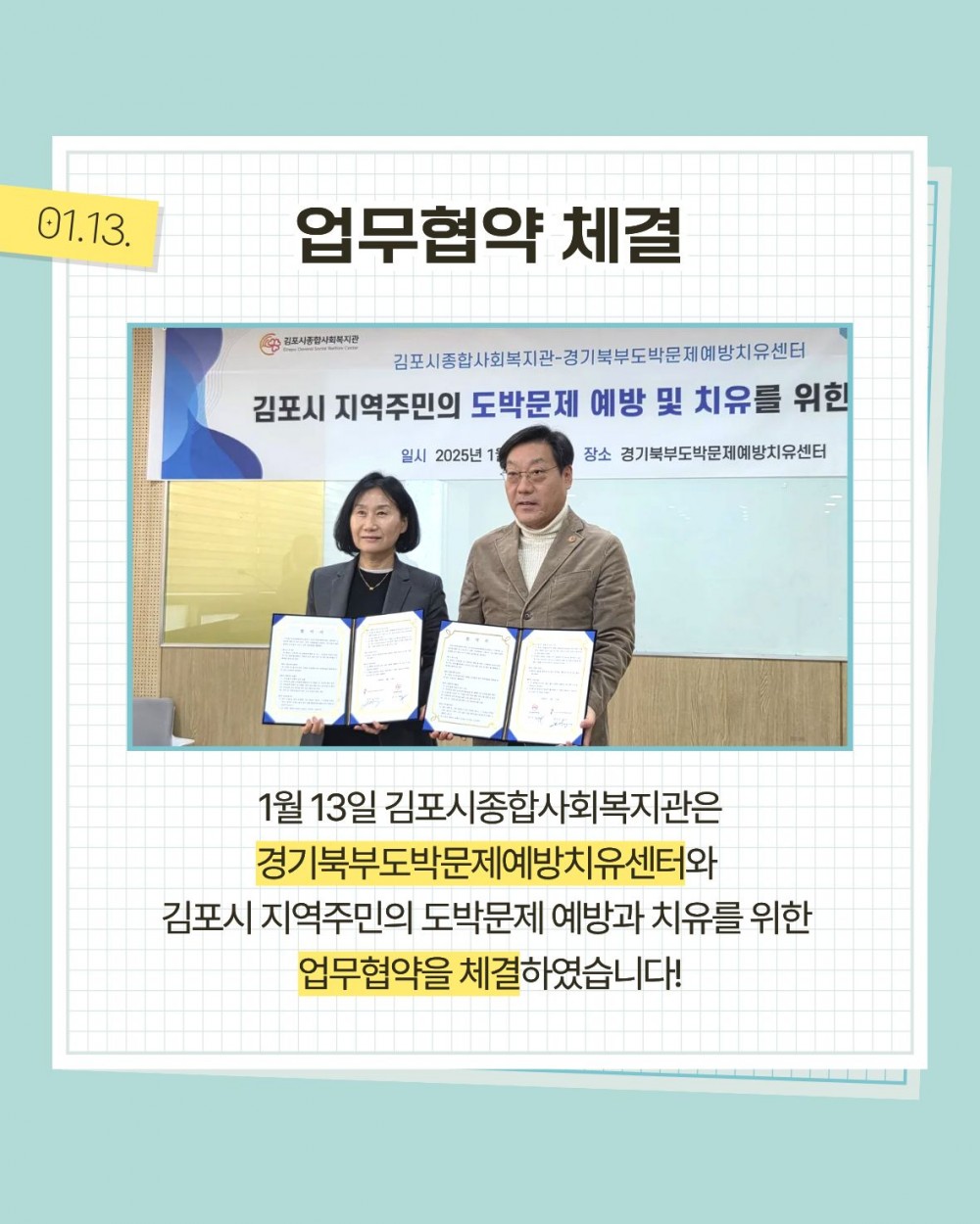 경기북부도박문제예방치유센터 업무협약