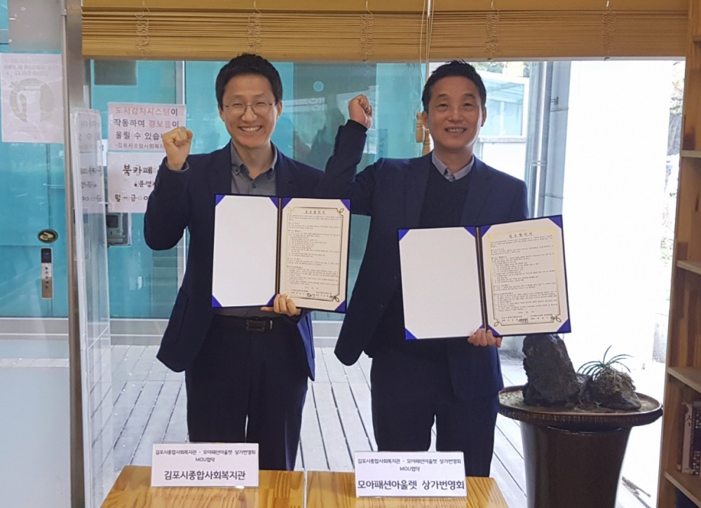 김포시종합사회복지관(관장 서상범)은 모아패션아울렛 상가번영회(회장 박철수)와 MOU협약을 실시하였습니다.