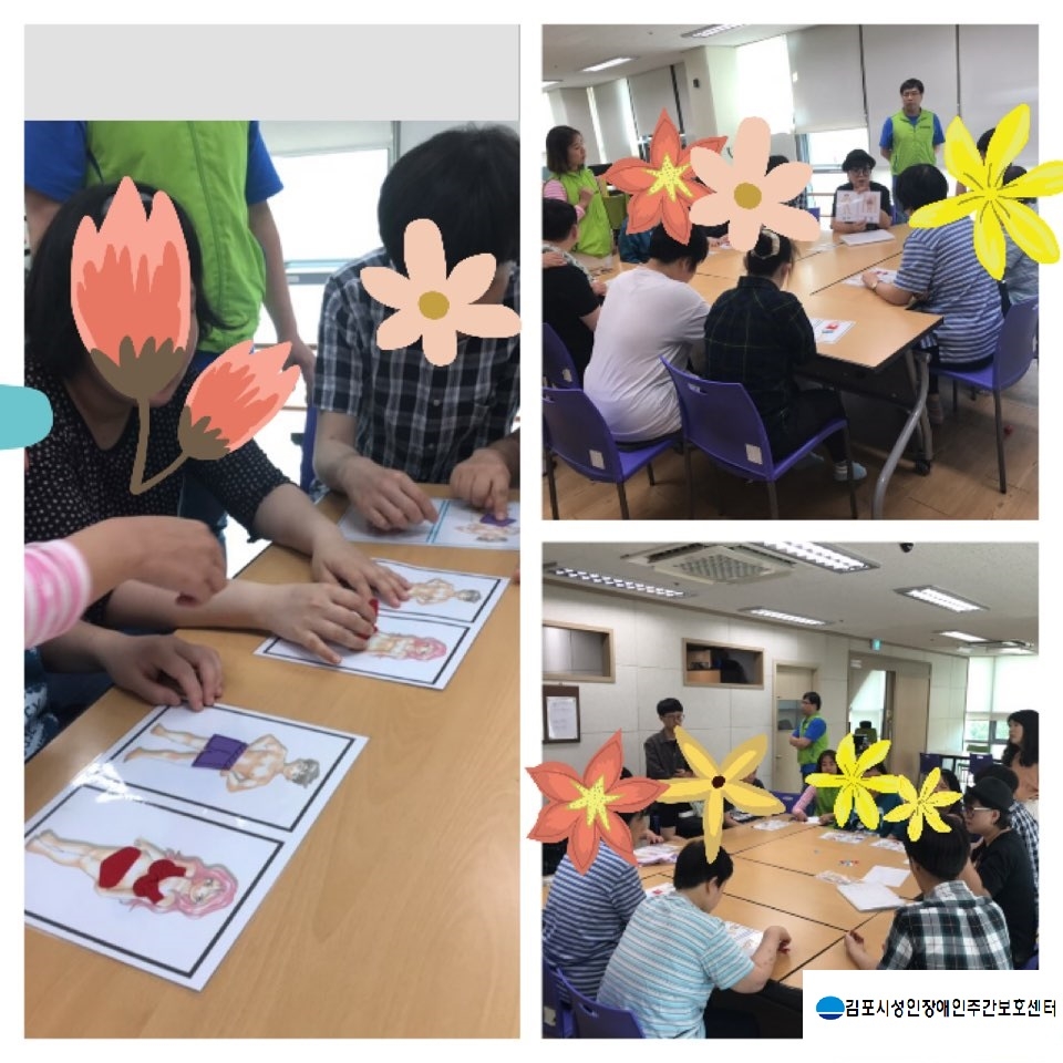 김포시성인장애인주간보호센터는 이용자의 올바른 성가치관의 정립 및 성폭력 대처방안 향상을 위해 연4회 성교육을 진행하고 있습니다.