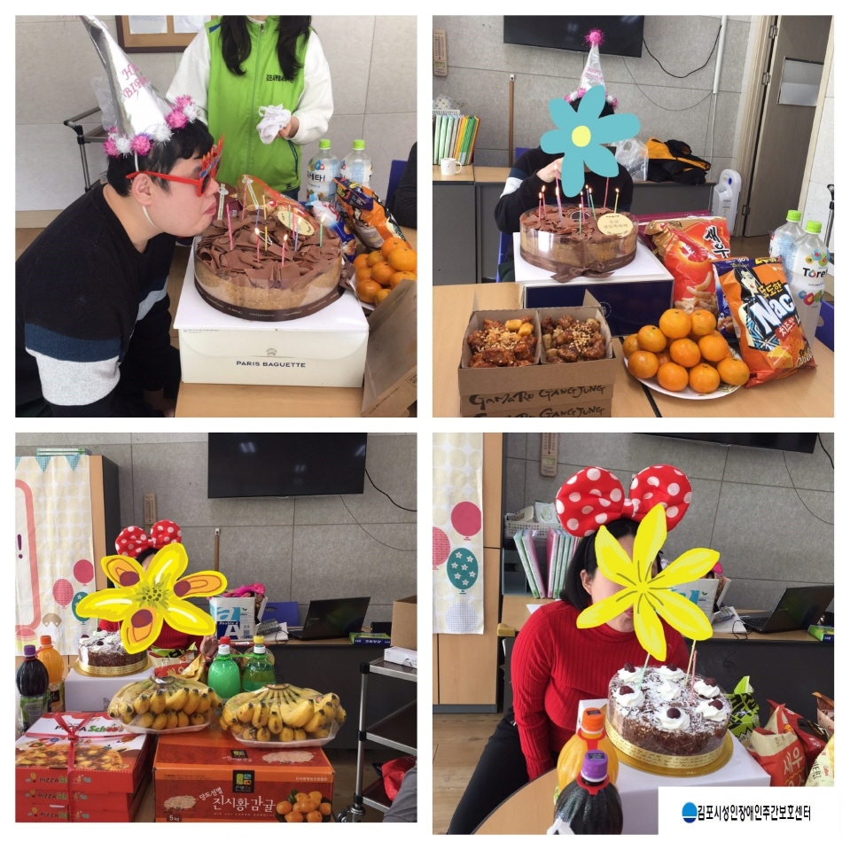 김포시성인장애인주간보호센터는 이용자 생일에 맞춰 생일파티를 진행합니다.