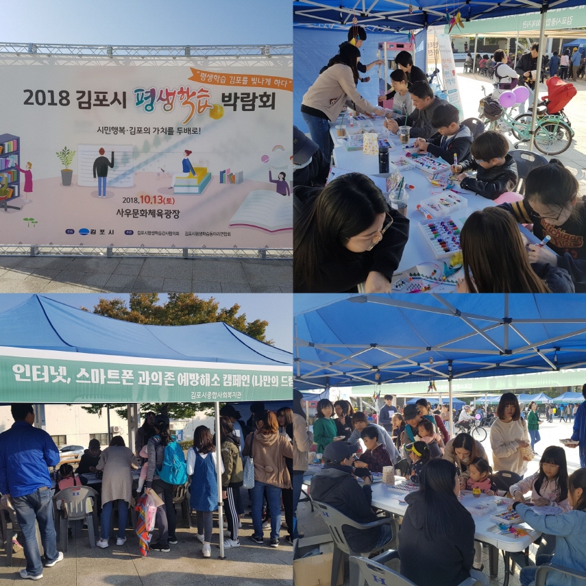 김포시종합사회복지관(관장 서상범)에서는 \'김포시평생학습박람회\'에 참여하여 \'인터넷 스마트폰 과의존 예방해소 캠페인\'을 실시하였습니다.