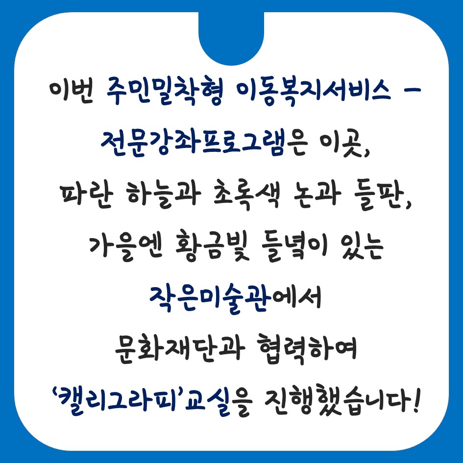 이동복지서비스 전문강좌프로그램 캘리그라피교실