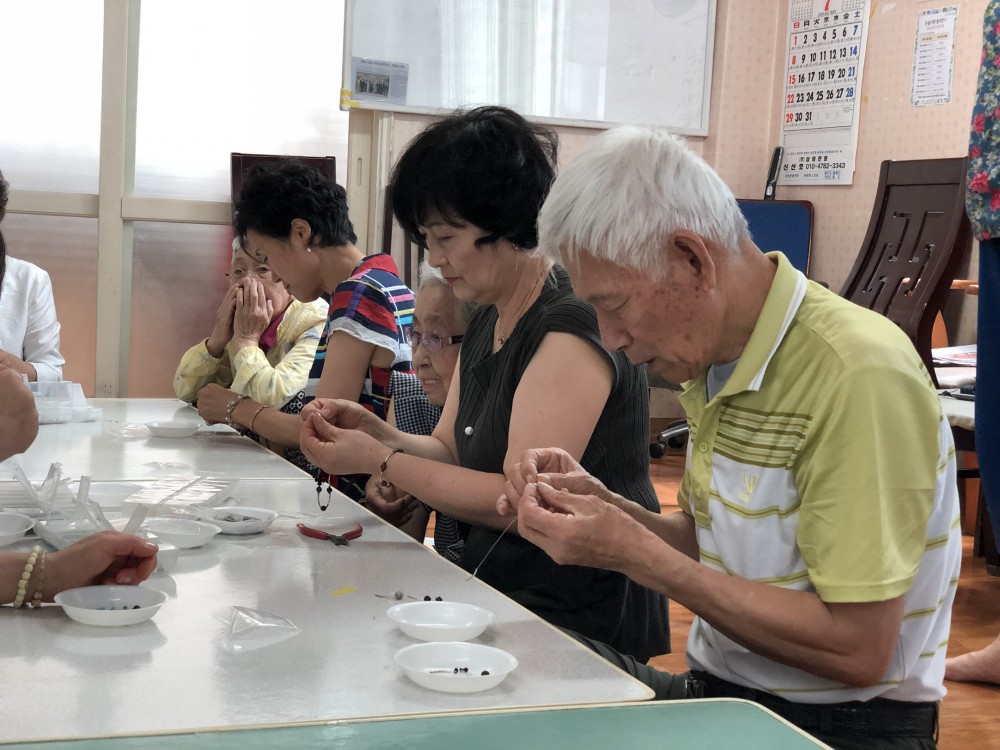 이번 활동에서는 어르신들의 혈액순환에 도움이 되는 \'희토류\' 라는 원석과 각종 비즈를 활용하여