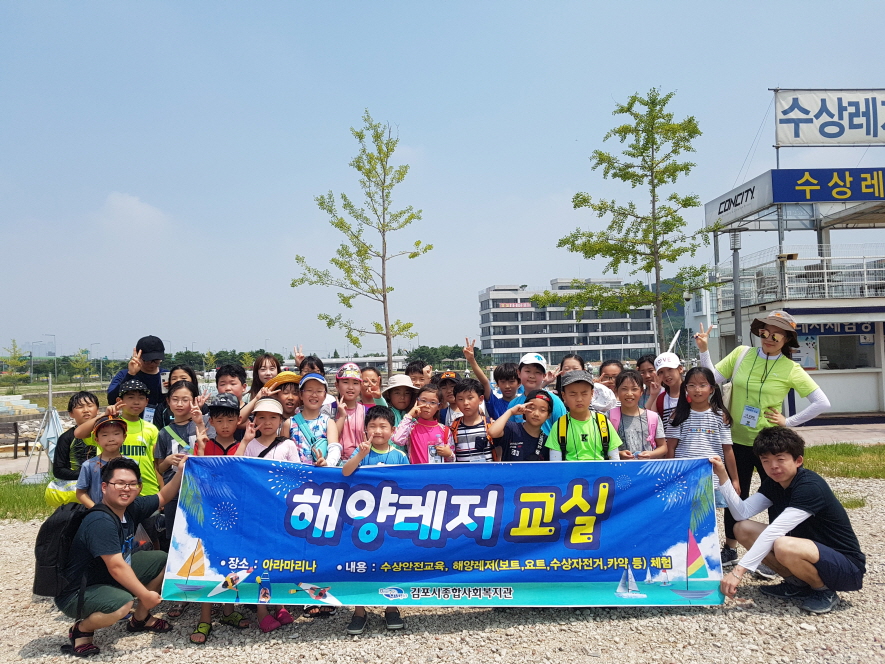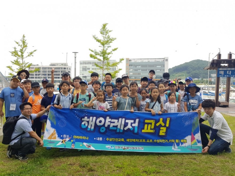 김포시종합사회복지관(관장 서상범)에서는 7월 26일(목)~27일(금) 2회에 걸쳐 2018년 특강프로그램 \'해양레저 교실\'을 진행하였습니다.