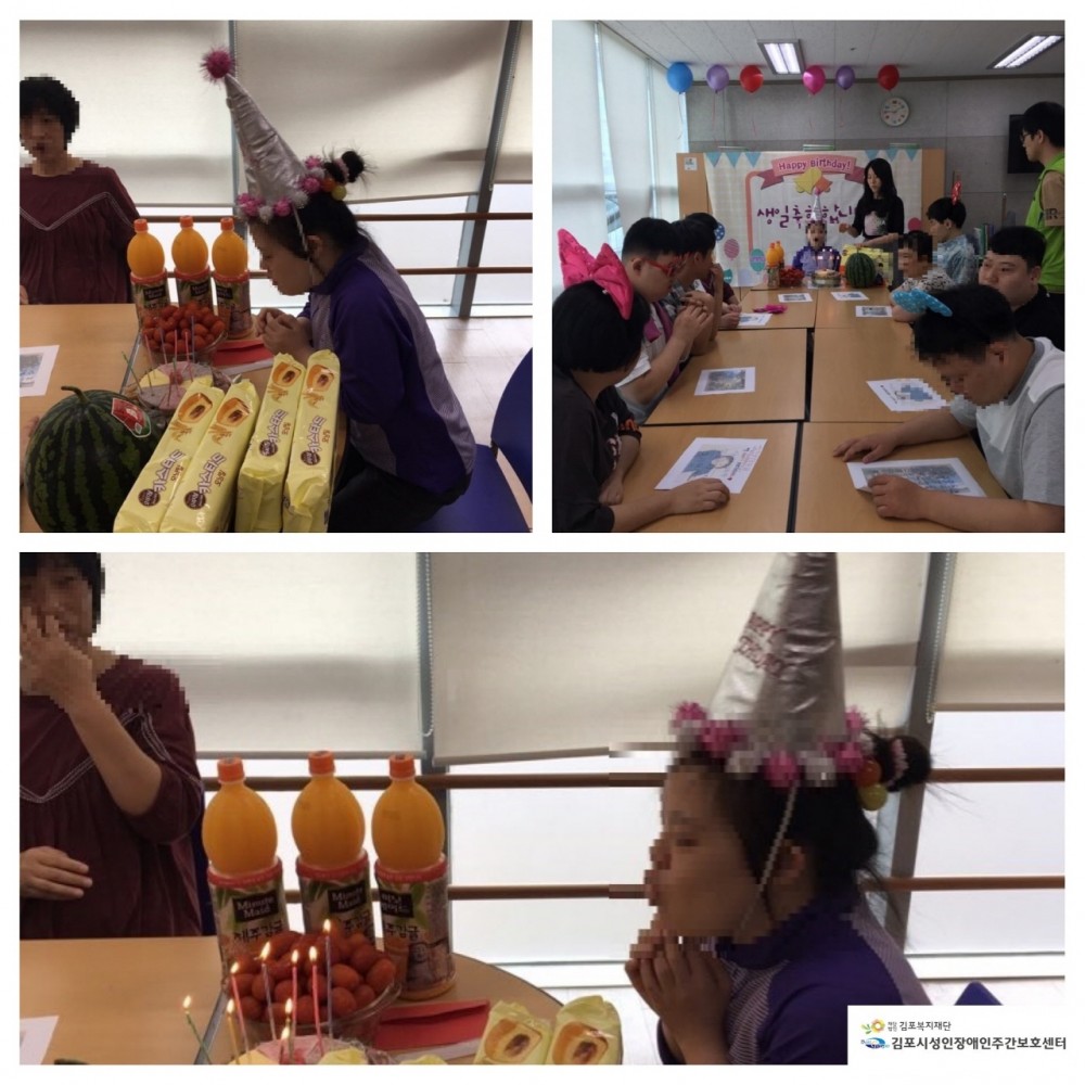 김포시성인장애인주간보호센터는 이용자 생일에 맞춰 생일파티를 진행합니다.