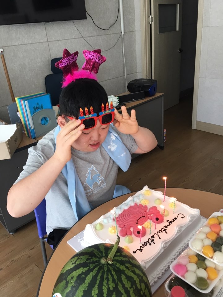 김포시성인장애인주간보호센터는 이용자 생일에 맞춰 생일파티를 진행합니다.