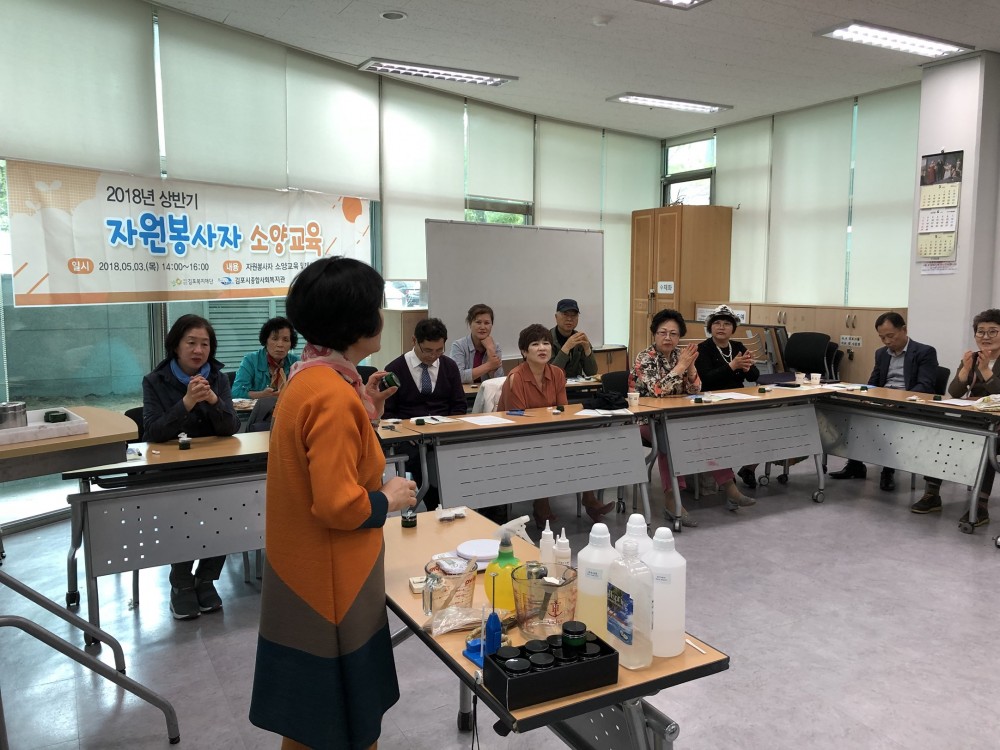 김포시종합사회복지관(관장 서상범)에서는 2018년 상반기 자원봉사자 소양교육 및 개인정보보호 교육을 진행했습니다. 이번 행사에서는 개인정보보호 방법에 대한 교육과 자원봉사 인센티브와 관련된 소양교육이 진행되었습니다. 또한, 식당, 이웃사촌, 손끝사랑, 찬드림 등 각 분야에서 수고해주시는 자원봉사자분들에게 작게나마 감사의 마음을 전하고자 천연 화장품(크림) 만들기와 티셔츠 장바구니 만들기 활동을 함께 진행했습니다.