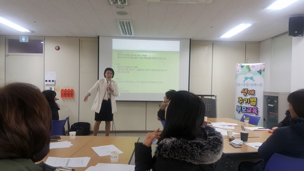 김포시종합사회복지관(관장 서상범)에서는 2018 생애주기별 부모교육 \'예비 초등학생 학부모를 위한 부모교육\' 2회차 강의가 진행되었습니다. 2회차 강의주제는 \'초등학교 성교육과 학교생활, 그것이 알고싶다\'로, 부모님들의 성가치관을 살펴보고 무지함에서 오는 사례와 함께 올바른 성가치관에 대한 교육이 이루어졌습니다. 아이들이 가장 많이 하는 성질문들을 통해 부모가 어떤 태도로 성교육 및 성토크를 해야하는지 알아보았습니다. 또한 학교폭력 및 성문제 실태를 바탕으로 관련 법을 배우고 가정에서 이루어져야할 예방교육에 대해 다뤘습니다. 마지막으로 자유로운 질의응답시간을 갖고 강의를 마무리 하였습니다.