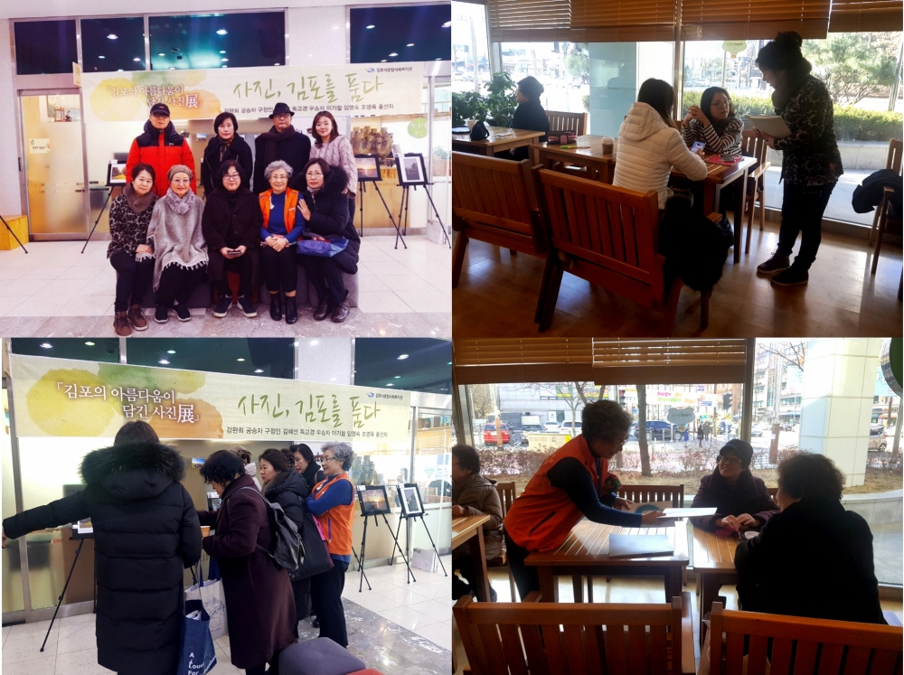 김포시종합사회복지관(관장 서상범)에서는 김포시의 아름다움을 사진을 통해 알리는 마을탐방단이 2017년 한 해동안 촬영한 김포의 아름다움이 담긴 사진과 시와함께은빛힐링 어르신들이 쓰신 시를 함께 엮은 작품집, 쉼이 있는 김포! 를 지역주민들과 나누는 활동을 진행하였습니다. 2017년 연말, 아름다운 사진과 시를 지역주민들과 함께 나누는 따뜻하고 의미있는 시간이었습니다.