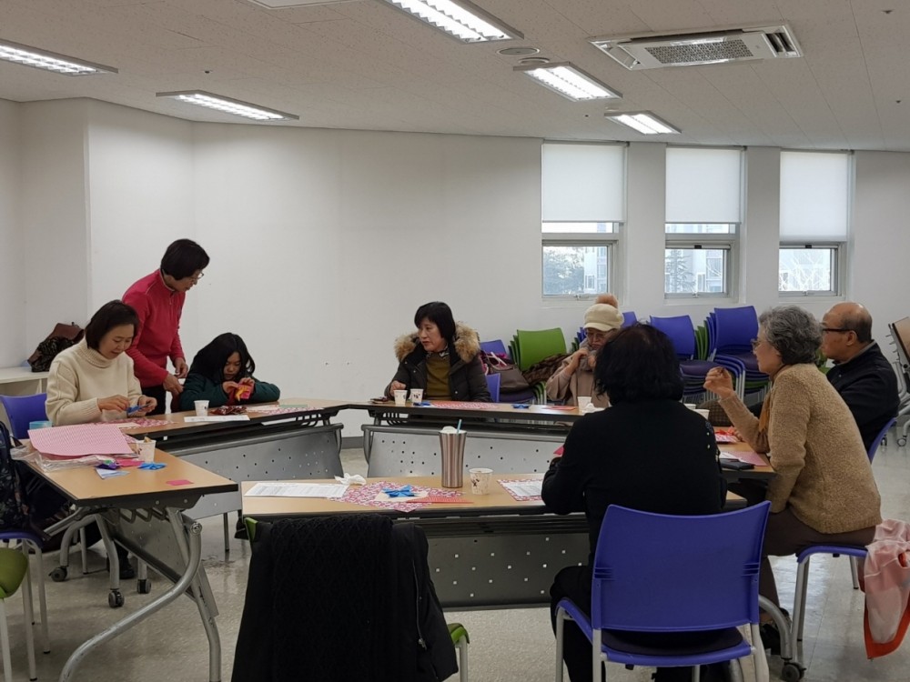 김포시종합사회복지관(관장 서상범)에서는 김포시의 아름다움을 사진을 통해 알리는 마을탐방단이 2018년 정규활동이 진행되기 전 각자의 재능과 지식을 나누는 자조활동을 1월부터 2월까지 월 2회 진행합니다. 1월 2째주 수요일에는 종이접기 강사활동을 하는 단원에게 종이접기를 배워보는 시간을 가졌고 4째주에는 김포에 오랜시간 거주한 단원에게 김포의 역사와 지명의 유래를 배워보는 시간을 가질 예정입니다.