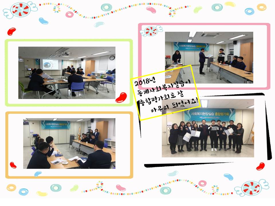 * 내용 : 2018년 동계 사회복지현장실습 종결 평가회 발표, 수료증 교부 등