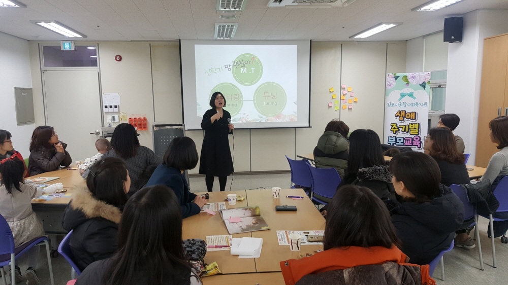 김포시종합사회복지관(관장 서상범)에서는 2018 생애주기별 부모교육 \'예비 초등학생 학부모를 위한 부모교육\' 1회차 강의가 진행되었습니다. 1회차 강의주제는 \'신학기 증후군 처방전\'으로, 신학기에 학부모가 가장 많이 하는 걱정 1위 부터 4위 까지를 살피고 각 걱정별 예방법 및 대처법을 알아보았습니다. 또한 2018학년도 국가/사회적 욕구를 반영한 교육과정개정방향을 살피고 이에 맞는 입학 전 주 양육자가 준비해야 할 사항을 알아보았습니다. 마지막으로 다독보다는 정독의 독서교육을 강조하며 21세기 인재 핵심능력인 비판적 사고, 협력, 창의성, 소통을 기르기 위한 \'하브루타식 동화책 읽어주기\'를 실습하며 강의를 마쳤습니다.