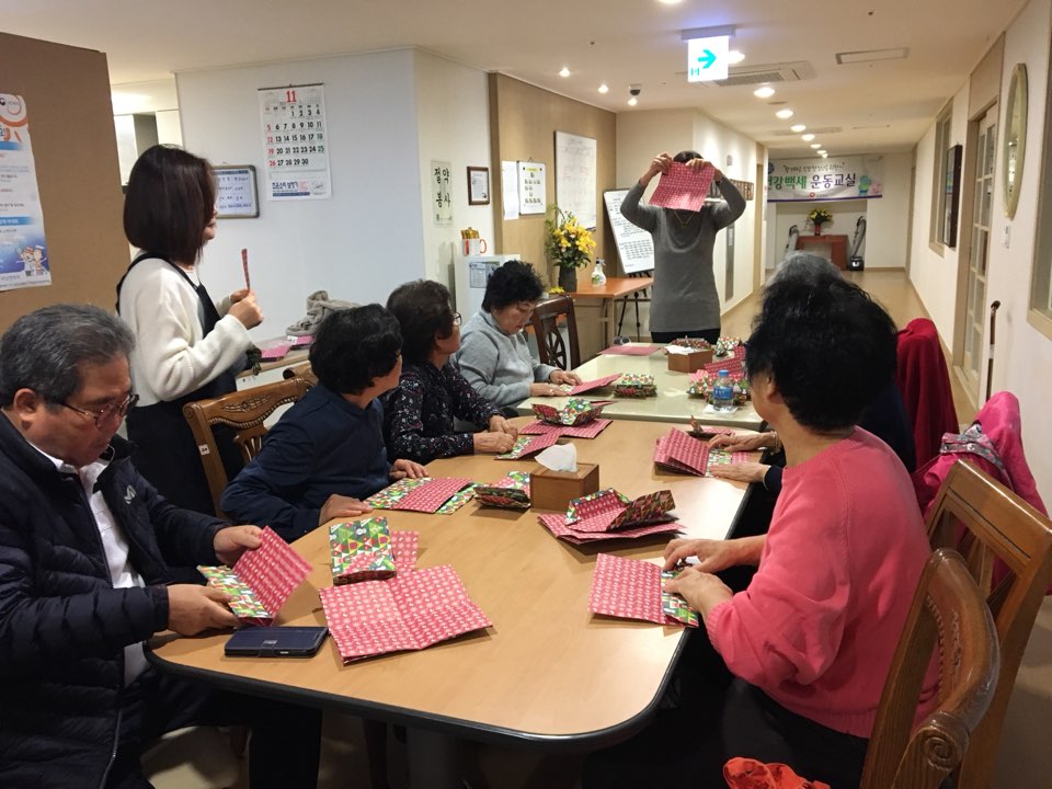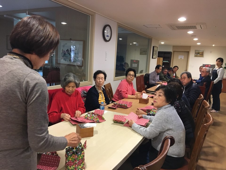 운양동 래미안 아파트에서의 활동은 하늘빛중학교 학부모회 봉사동아리와 함께 진행하며, 9월부터 12월까지 월 1회 진행될 예정입니다. 이번 11월 활동에서는 운양동 래미안 아파트 어르신들과 함께 종이접기 연필꽂이 만들기를 진행하였습니다. 약간 어려운 부분도 있었지만 봉사자분들의 도움으로 참여하신 어르신 모두가 각자의 연필꽂이를 완성할 수 있었습니다.^^