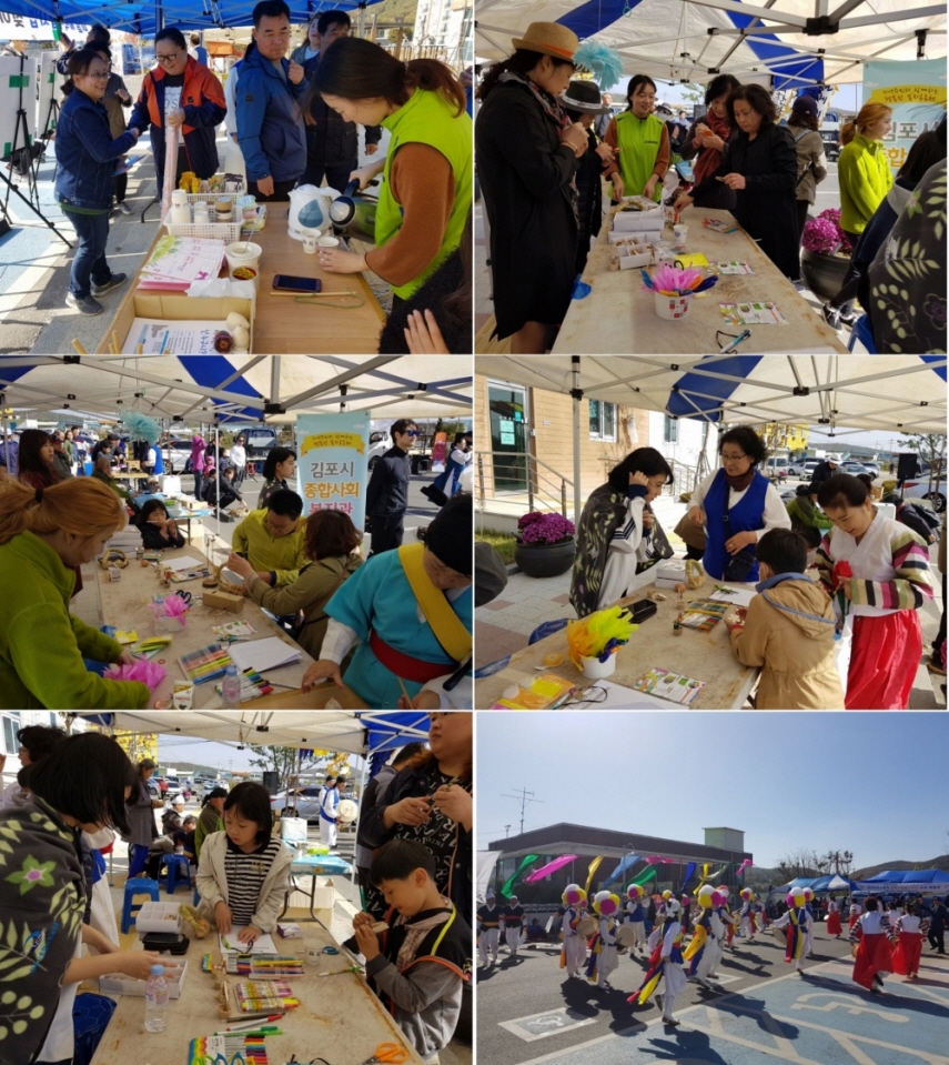 이날 안내부스에서는 복지관 리플렛배부와 늦가을 부쩍 추워진 날씨에 따뜻한 차를 나눠드렸으며 체험부스에서는 남녀노소 누구나 즐겁게 참여할 수 있는 팽이만들기, 제기만들기, 메모꽂이만들기가 진행되어 신나는 풍물패를 들으며 많은 지역주민이 참여하였습니다. 앞으로도 김포시종합사회복지관에서는 문화복지혜택에 소외된 농촌지역주민들과 함께하기 위해 노력하겠습니다.
