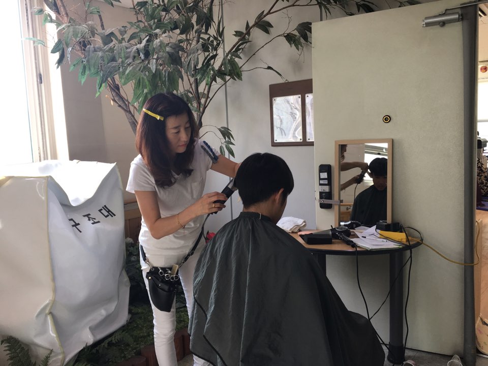 김포시성인장애인주간보호센터는 정낙영 선생님과 황윤순 선생님의 도움으로 미용서비스를 진행하였습니다.