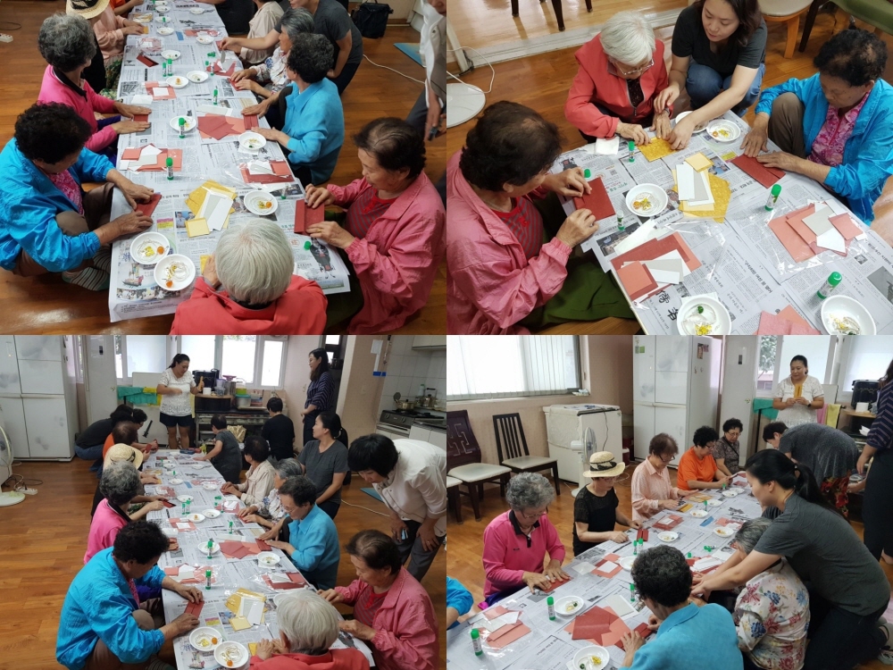 9월 활동에서는 종이접기 활동이 실시되었으며, 종이접기 활동을 통해 다용도 보관함을 만들어보았습니다. 어르신들과 자원봉사자들의 정성스러운 손 끝에서 예쁘고 유용한 다용도 보관함이 만들어져 참여하신 어르신 모두가 즐거워 하셨습니다.