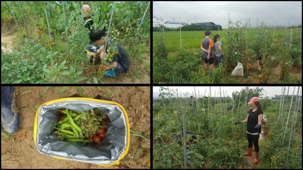 지난 회차에 배운 \'곁순따기와 지주세우기\'를 활용하여 텃밭을 관리하고, 토마토와 옥수수, 꽈리고추 등 텃밭작물을 수확하는 시간을 가졌습니다. 당일 새벽에 많은 비가 내려 땅이 질척였지만, 장화를 신고 가족과 즐겁게 텃밭을 관리하며 작물을 수확하는 모습에서 행복이 느껴졌습니다.