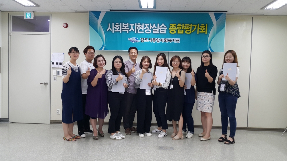 * 내용 : 2017년 하계 사회복지현장실습 종결 평가회 발표, 수료증 교부 등