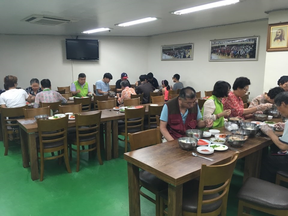 북변동에 위치한 김포중앙교회 내 여전도회가 주축이 되어 만들어진 마을봉사단 \'좋은이웃\'의 주관으로 작년에 이어 2017년에도 말복을 맞이하여 \'복날 사랑의 영양식 지원 사업을 실시하였습니다.