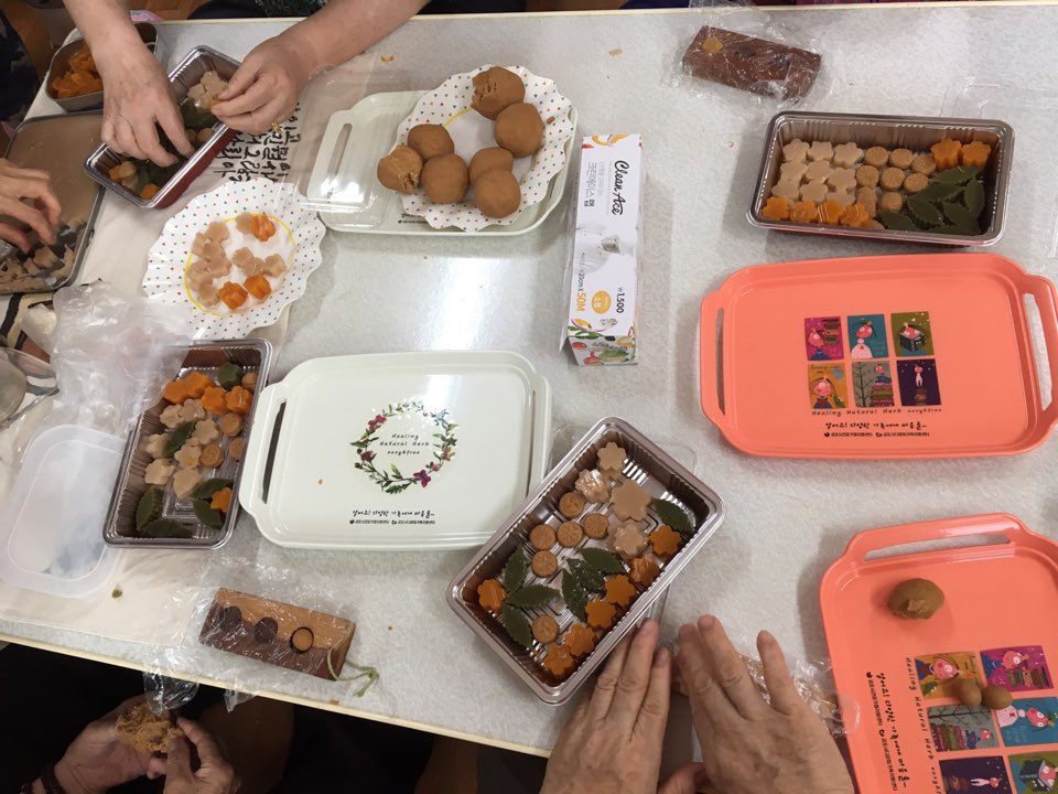8월 활동에서는 다식과 양갱 만들기 활동이 실시되었으며, 다식과 양갱을 이용하여 각자의 그릇을 아름답게 꾸며보았습니다. 어르신들과 자원봉사자들의 손 끝에서 예쁘고 맛있는 다식과 양갱이 만들어져 강사님이 직접 준비하신 차와 함께 차담을 나누었습니다.