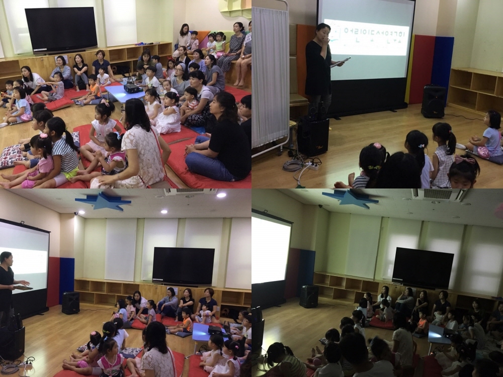 ■ 내용 : 꿈에그린 작은도서관 프로그램 \'눈으로 보고 귀로 듣는 빛그림공연\' 진행
