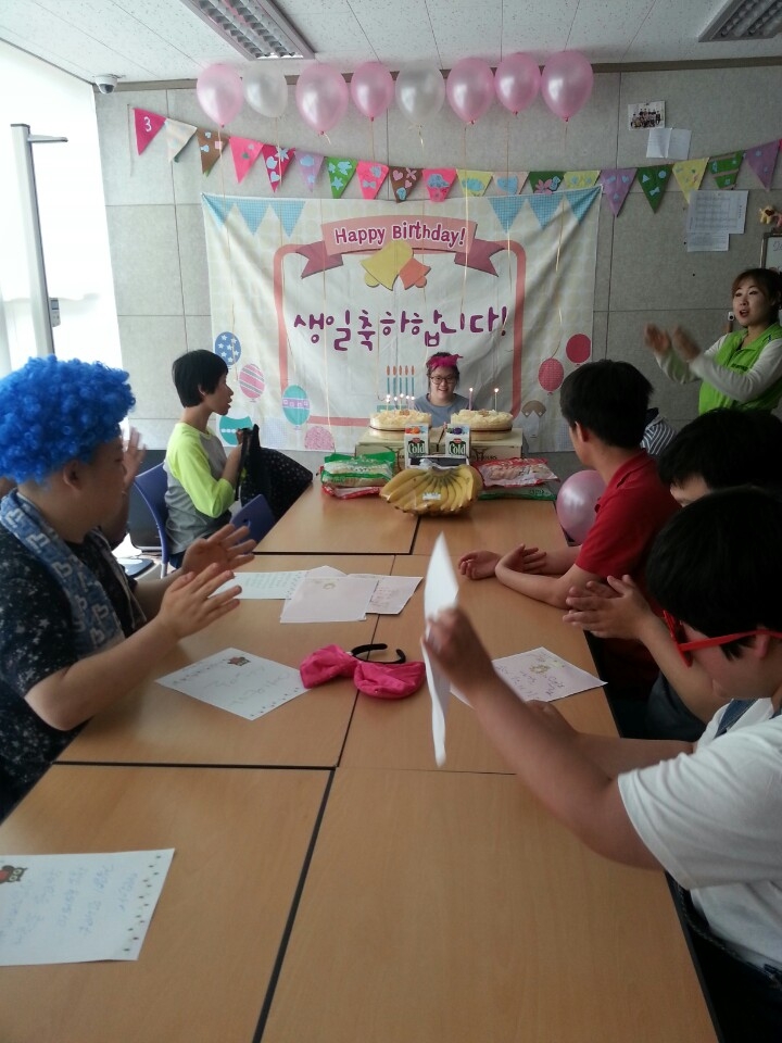 김포시성인장애인주간보호센터는 이용자 생일에 맞춰 생일파티를 진행합니다.