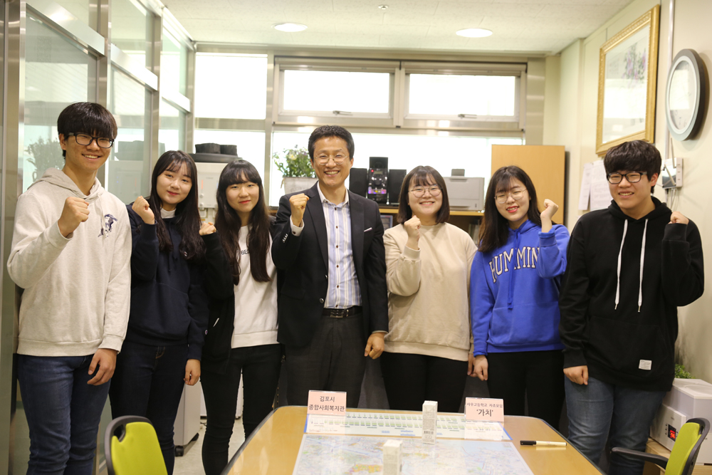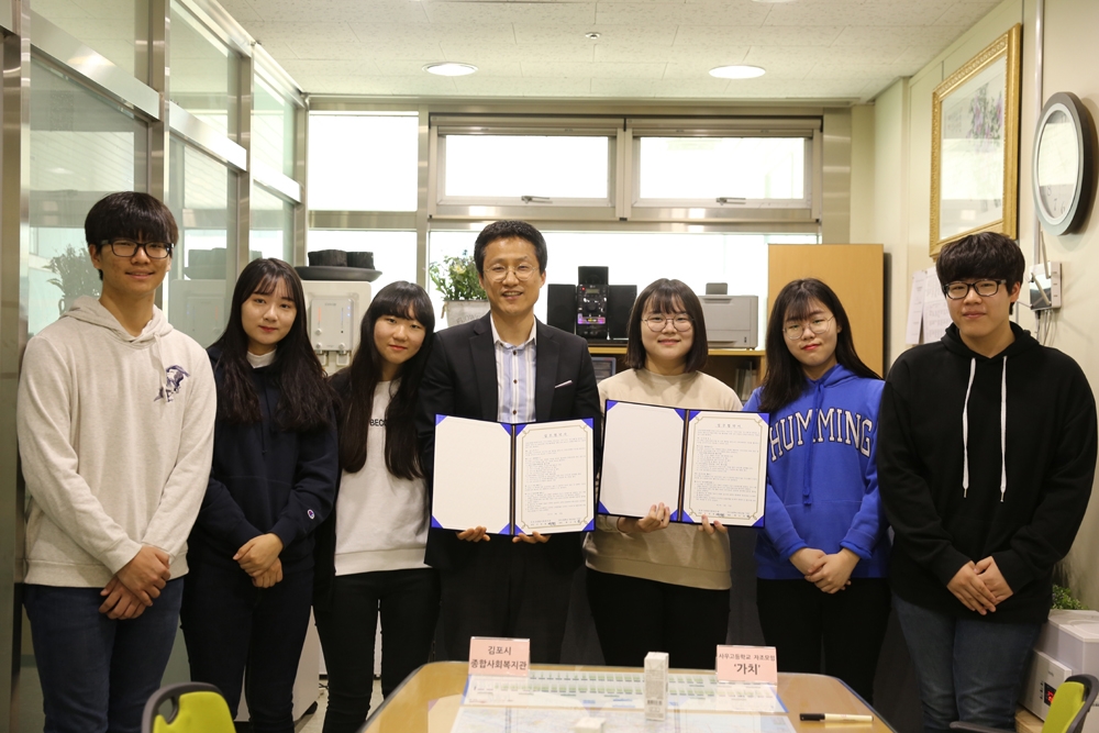 김포시종합사회복지관(관장 서상범)에서는 사우고등학교 자조모임 \'가치\'와 mou협약을 진행하였습니다.