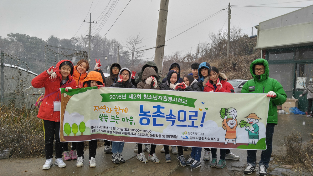 김포시종합사회복지관(관장 서상범) 에서는 2016년 제 2회 청소년자원봉사학교가 11월 26일(토) 10:00~18:00 김포시 내 중학생을 대상으로 실시되었습니다.