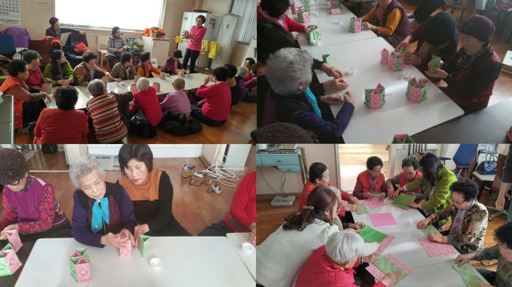 11월에는 종이접기를 활용한 연필꽂이 만들기가 실시되었으며 활동에 참여하였던 어르신들은 \"손녀에게 선물해야겠다.\" , \"다른 종이로 손자와 한번 만들어 보고싶다.\" 며 기뻐하시며 뿌듯해하셨습니다.