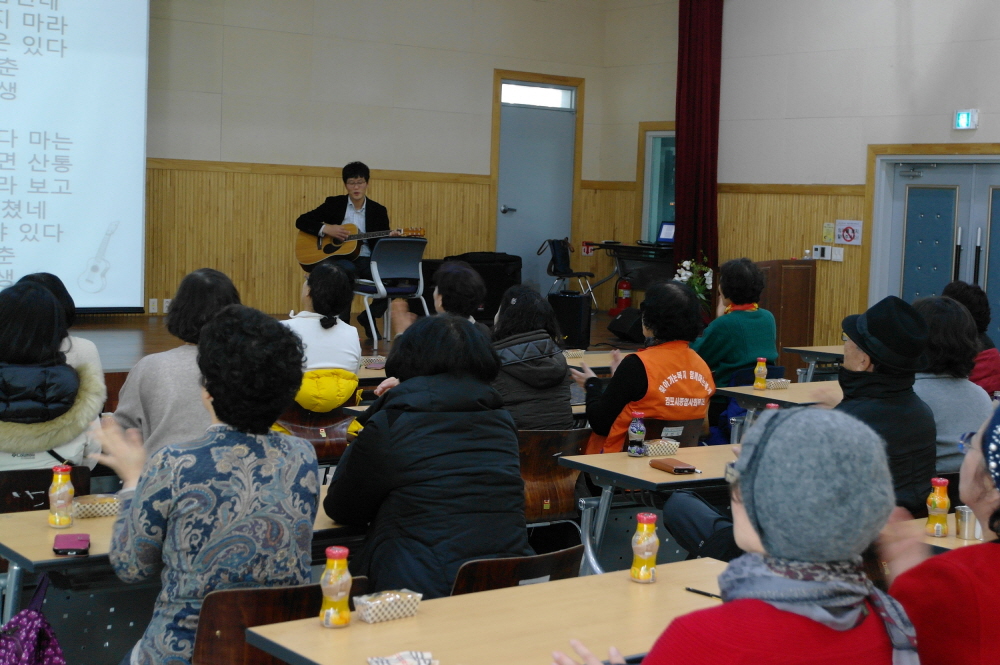 아파트 마을조직의 성공사례와 함께 관장님이 마을주민으로부터 배웠다는 기타연주에 맞춰 노래도 부르는 즐거운 시간을 가졌습니다.
