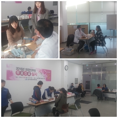 의료여건이 열악한 김포시 거주 이주노동자, 다문화 가족의 건강과 복지증진을 위해 실시된 이번 진료는 내과 진료 외 치과 스켈링, 약손(지압), 처방약 지급 까지 종합적인 혜택을 드렸습니다. 이번 무료의료봉사에는 90여명의 외국인주민이 무료진료을 받아 만족해 하였습니다.외국인무료진료 활동은 앞으로 계속 진행 될 예정입니다.