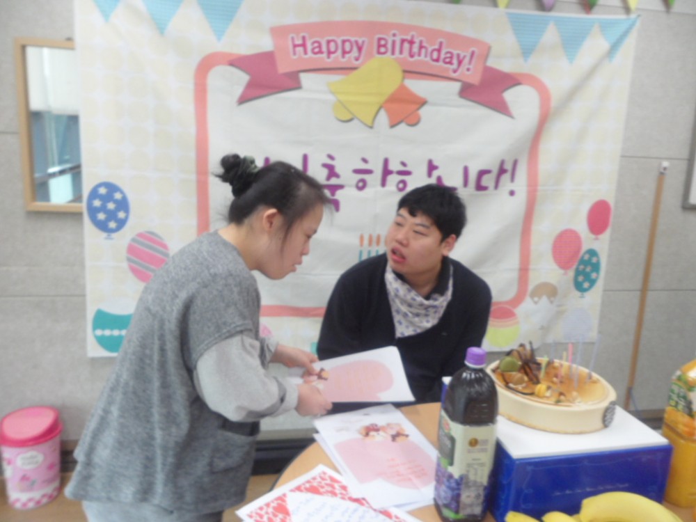 김포시성인장애인주간보호센터는 이용자 생일에 맞춰 생일파티를 진행합니다.
