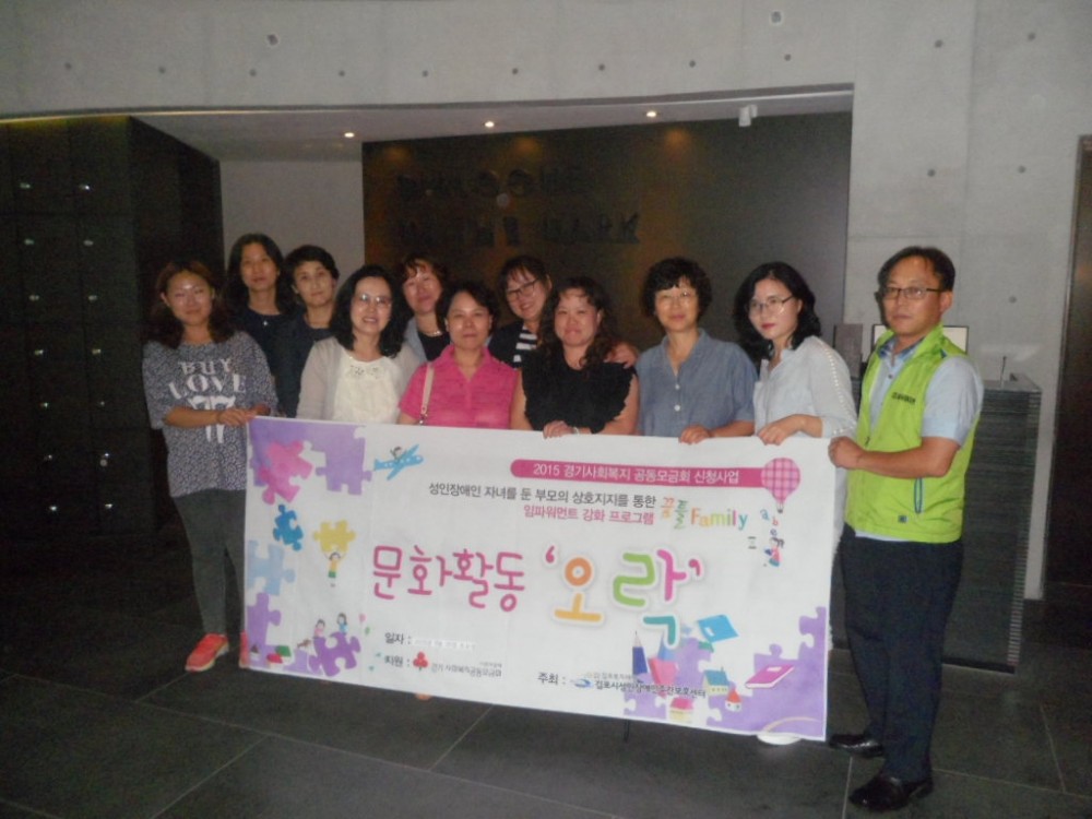 문화활동은 2015년 경기공동모금회 지원 사업으로 선정된 “성인발달장애인 자녀를 둔