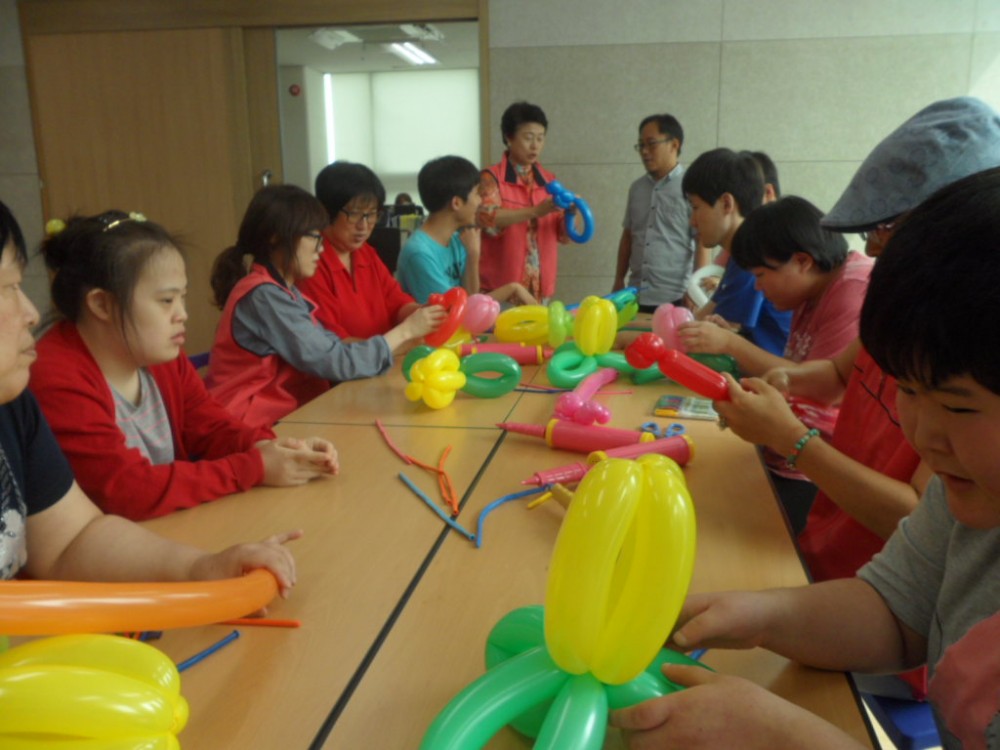 김포시성인장애인주간보호센터는 8월 인지감각활동으로 \'종이접기, 풍선아트\'를 진행했습니다.