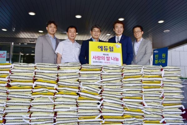 8월 27일 김포복지재단(이사장 유영록)은 (주)에듀윌(대표 양형남)과 “사랑의 쌀 나눔” 기탁식을 김포시청 부시장실에서 진행하였습니다.