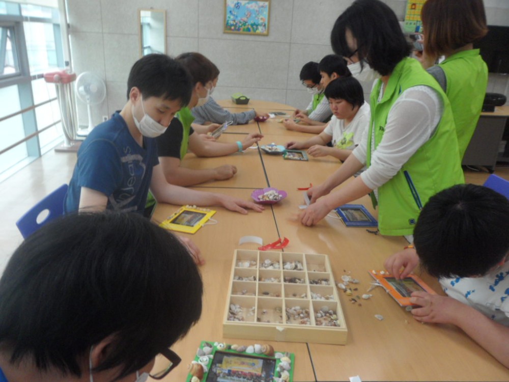 2015.06.17.(수) 14:00~14:30 액자 만들기(준비된 액자틀에 조개껍데기 붙여 완성)