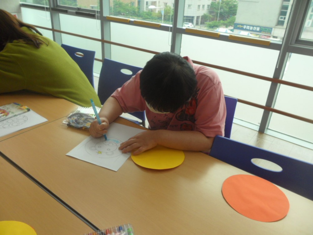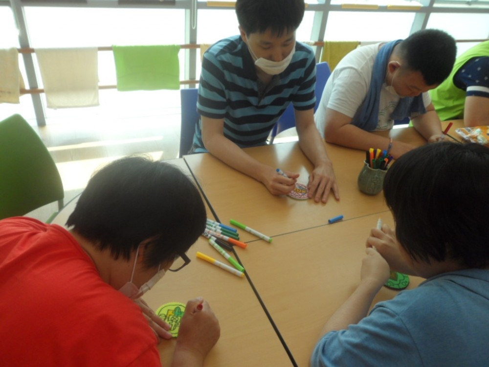 * 일 시 및 내 용 : 2015.06.12.(금) 14:00~14:30 컵받침 만들기(컵받침 밑그림에 염색용 마카로 색칠하여 완성)
