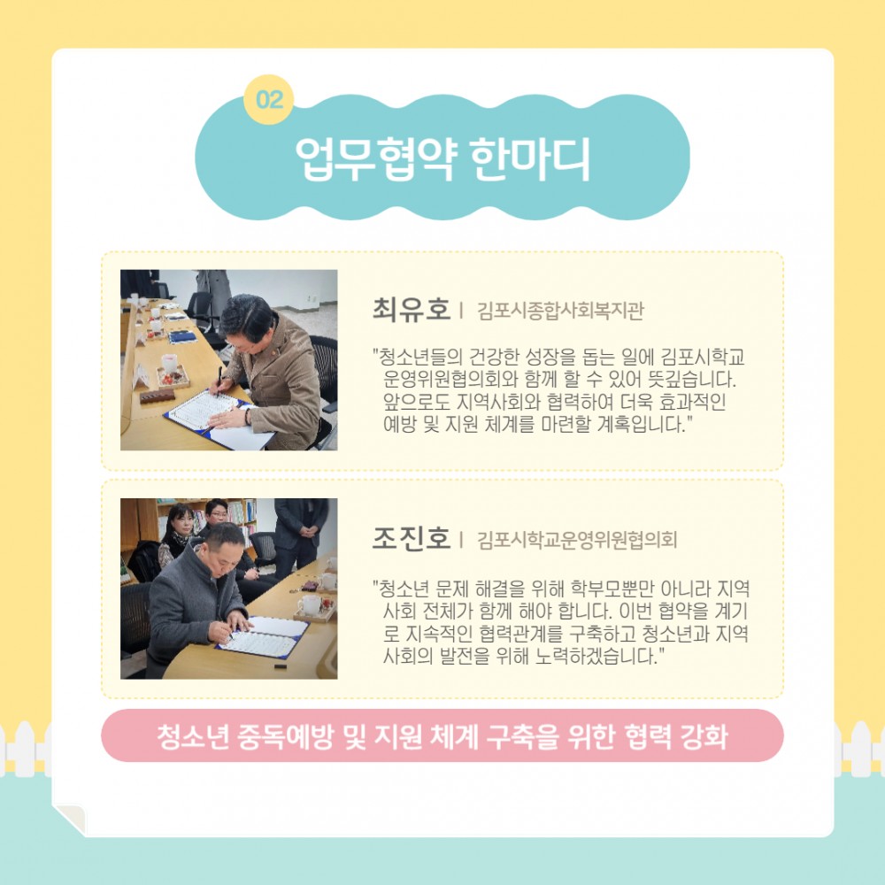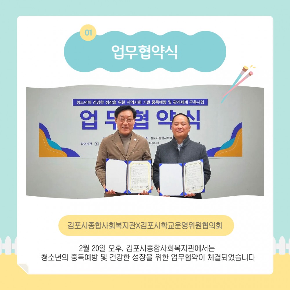 2025. 2. 20.(목), 김포시종합사회복지관에서 청소년 중독 예방을 위한 뜻깊은 협약이 진행되었습니다.
