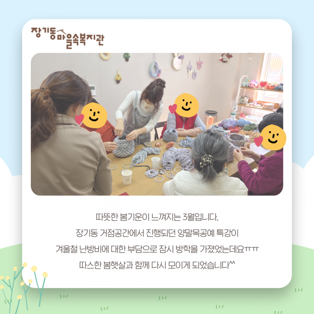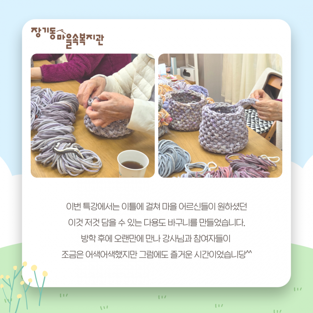 [장기동마을속복지관] 양말목공예 특강 3월 활동 이야기