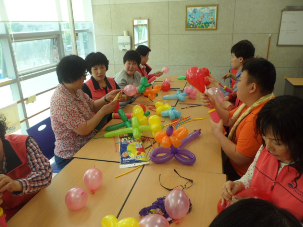 자원봉사자의 지도로 \'공예, 종이접기, 풍선아트\'를 진행합니다.