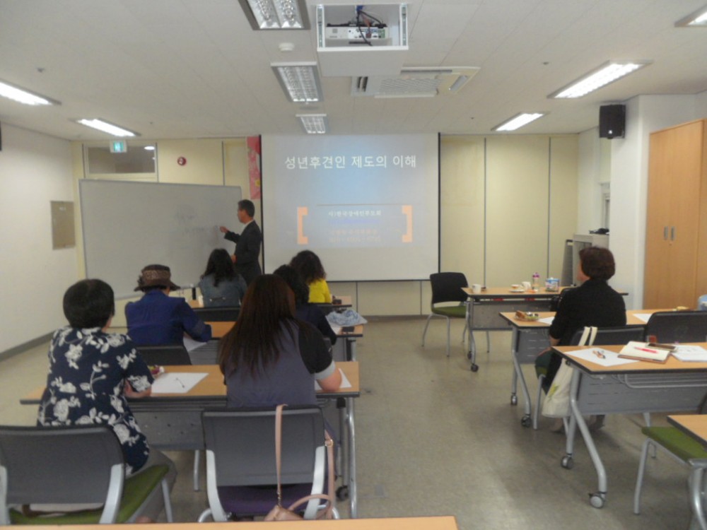 보호자교육은 2015년 경기공동모금회 지원 사업으로 선정된 “성인발달장애인 자녀를 둔