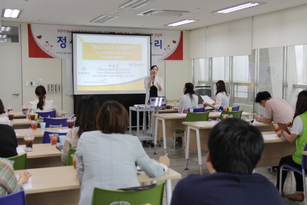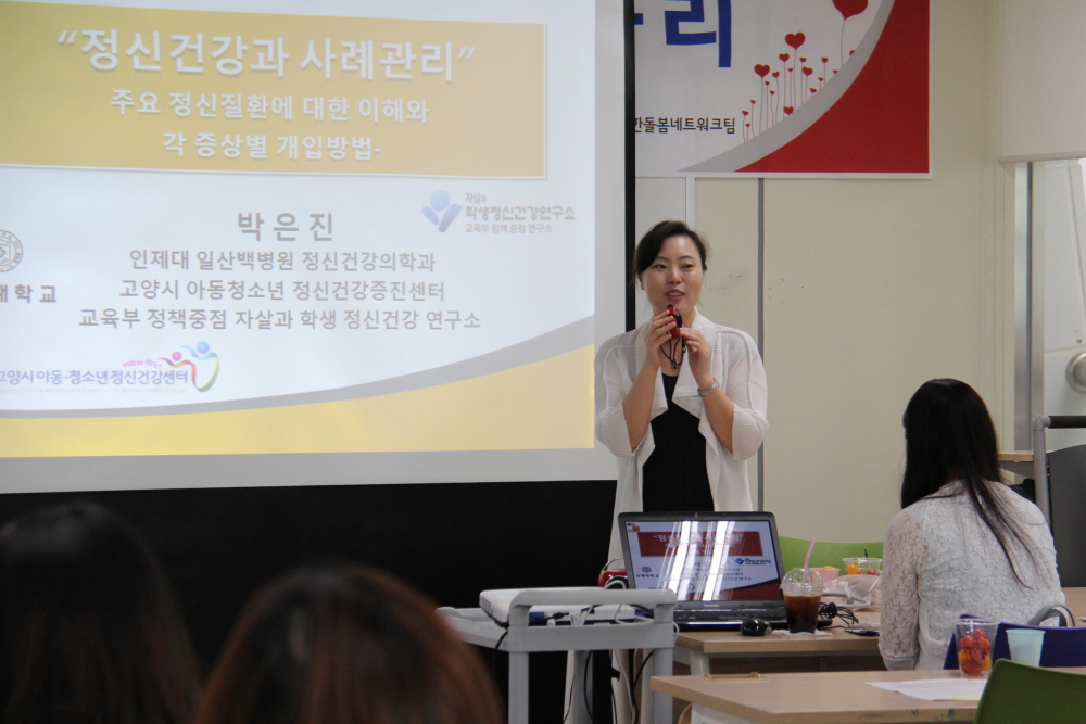 1부는 박은진 교수(일산백병원 정신건강의학과)가 주요 정신질환에 대한 이해와 각 증상별 대응, 개입방법 등에 대해 강의해주셨고,