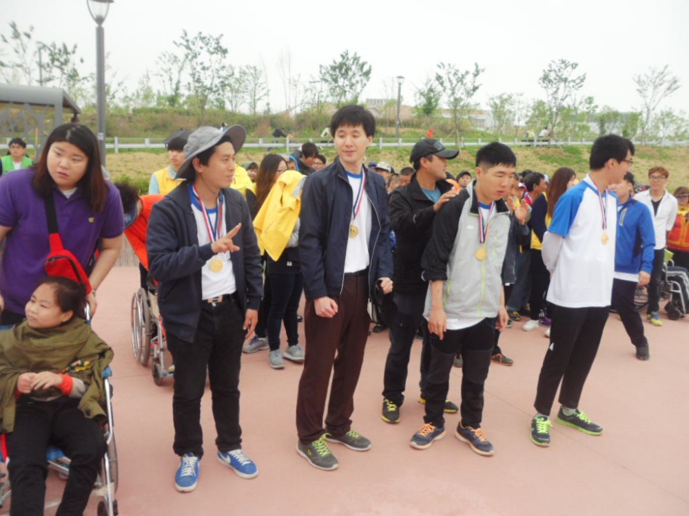 가족걷기대회는 2015년 경기공동모금회 지원 사업으로 선정된 “성인발달장애인 자녀를 둔 부모의 상호지지 프로그램 ”꿈틀 family“ 중 하나로 김포시장애인복지시설연합회에서 주최한 거북이 마라톤 어울림대회에 이용자 11가정이 참여했습니다.