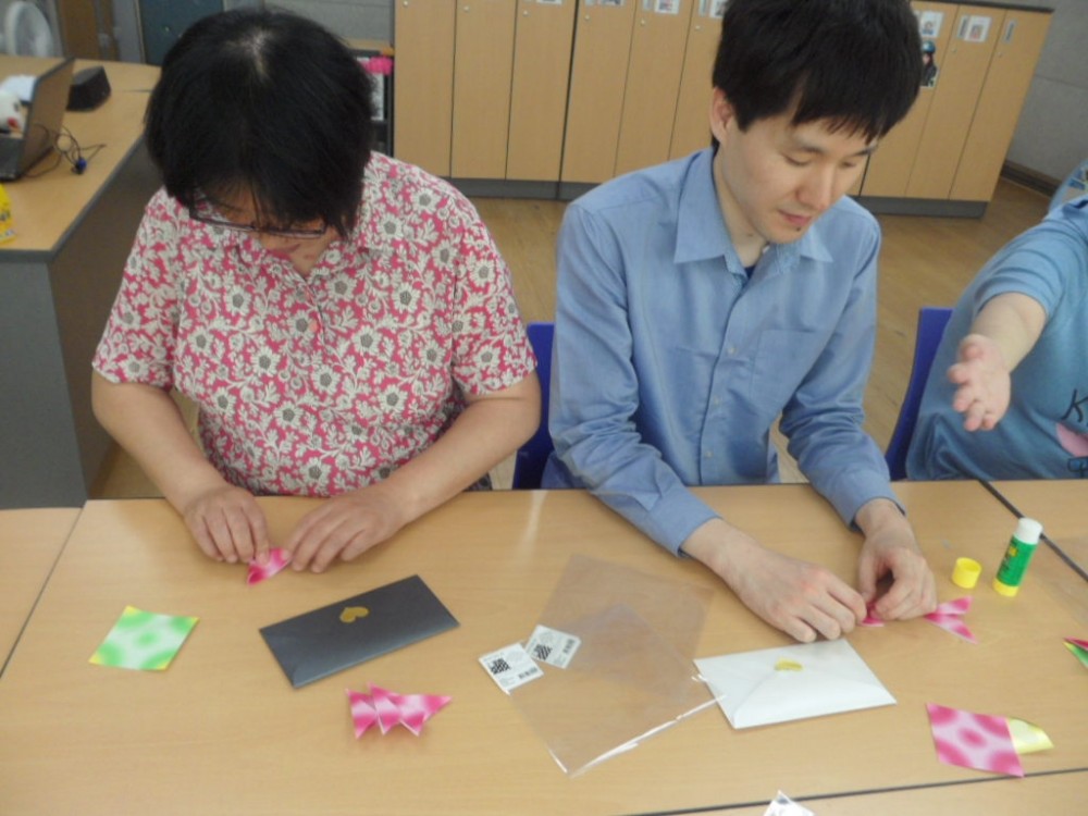 \'카드 만들기, 노래방 이용, 체조 및 티타임\' 을 진행했습니다.