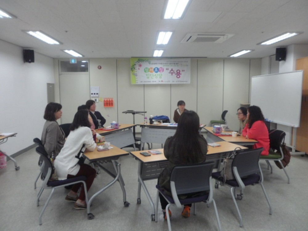 정서조절 집단상담은 2015년 경기공동모금회 지원 사업으로 선정된 “성인발달장애인 자녀를 둔 부모의 상호지지 프로그램 “꿈틀family‘중 하나로 4월~5월 매주 목요일 총 8회기가 진행될 예정입니다 .
