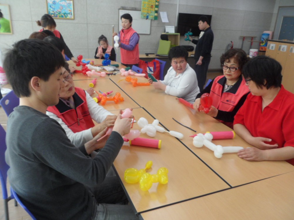 자원봉사자의 지도로 \'종이접기, 공예활동, 풍선아트\'를 진행합니다.