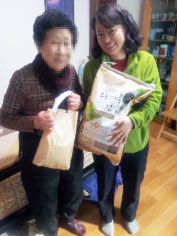 - 후 원 처: 1) 김포복지재단 쌀 10Kg 30포, 2) 퍼주네(우리농산물 직판장) 떡국떡 800g 100팩,